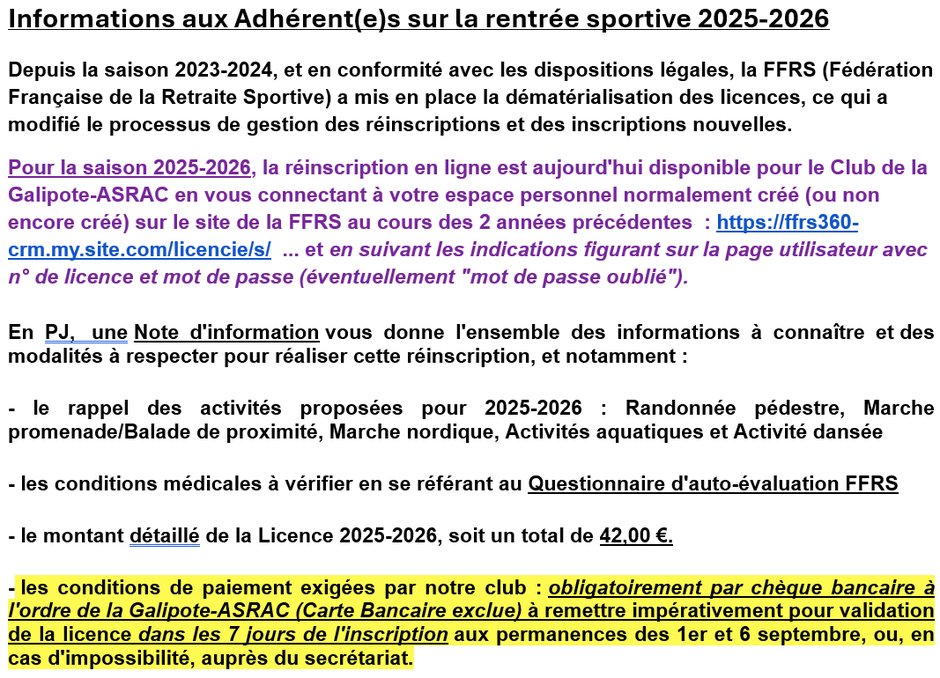 Infos reprise sept.2025